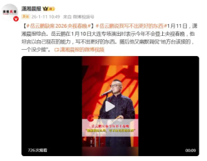 岳云鹏缺席2026央视春晚,不是喜剧人的“溃败”,而是流量时代的清醒坚守。他用自己的选择告诉我们,喜剧人的核心竞争力从来不是流量与曝光度,而是对创作的敬畏、对生活的观察与对观众的真诚。期待岳云鹏在沉淀之后,能带着更优质的作品回归舞台,也希望更多喜剧人能坚守创作初心,让喜剧行业摆脱浮躁风气,呈现出更健康的发展态势。