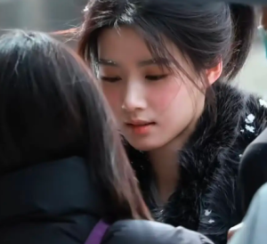 而最让人惊艳的,依然是那个带伤回眸的瞬间,将倔强与隐忍演绎得淋漓尽致。镜头下,她微微回眸,发丝被寒风拂乱,贴在带伤的脸颊上,眼眸轻抬,目光坚定而有力量,没有一丝柔弱乞怜,反而透着一股“就算全世界都抛弃我,我也要活成自己”的倔强。那眼神,复杂而有层次,有身处困境的隐忍,有不向命运低头的坚定,还有一丝对过往的怀念,仿佛在诉说着一段“身逢乱世,却坚守本心”的动人故事,让人看一眼就难以忘怀。
